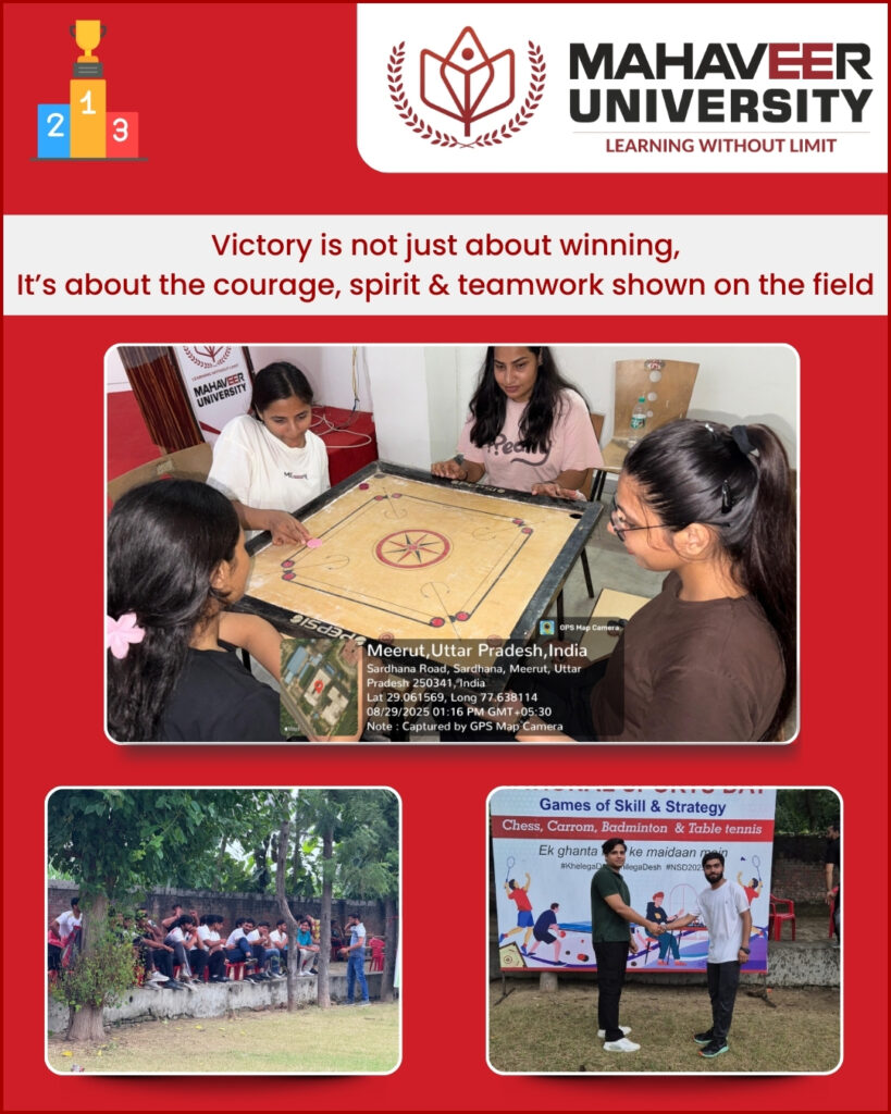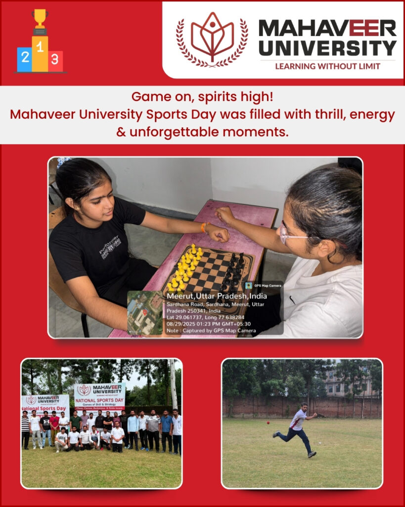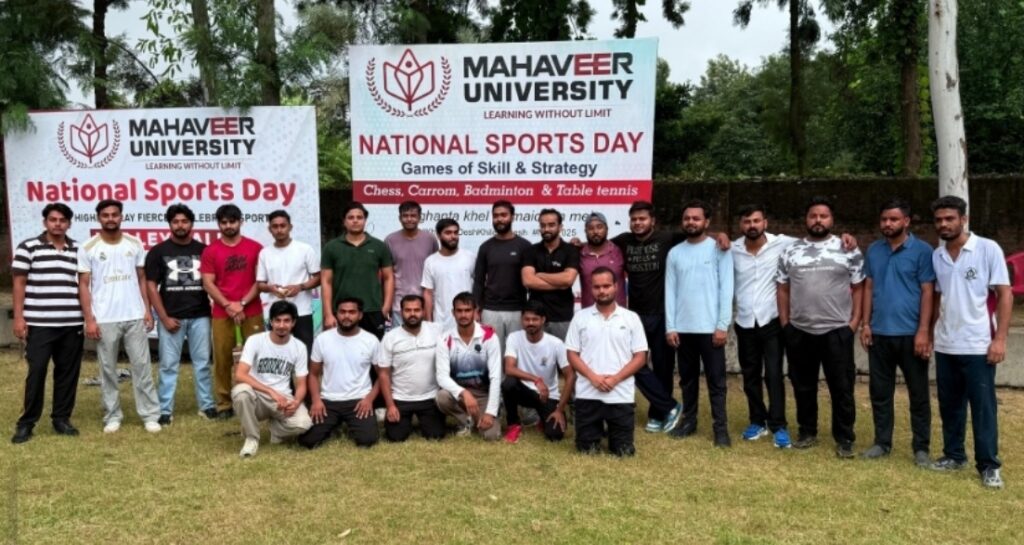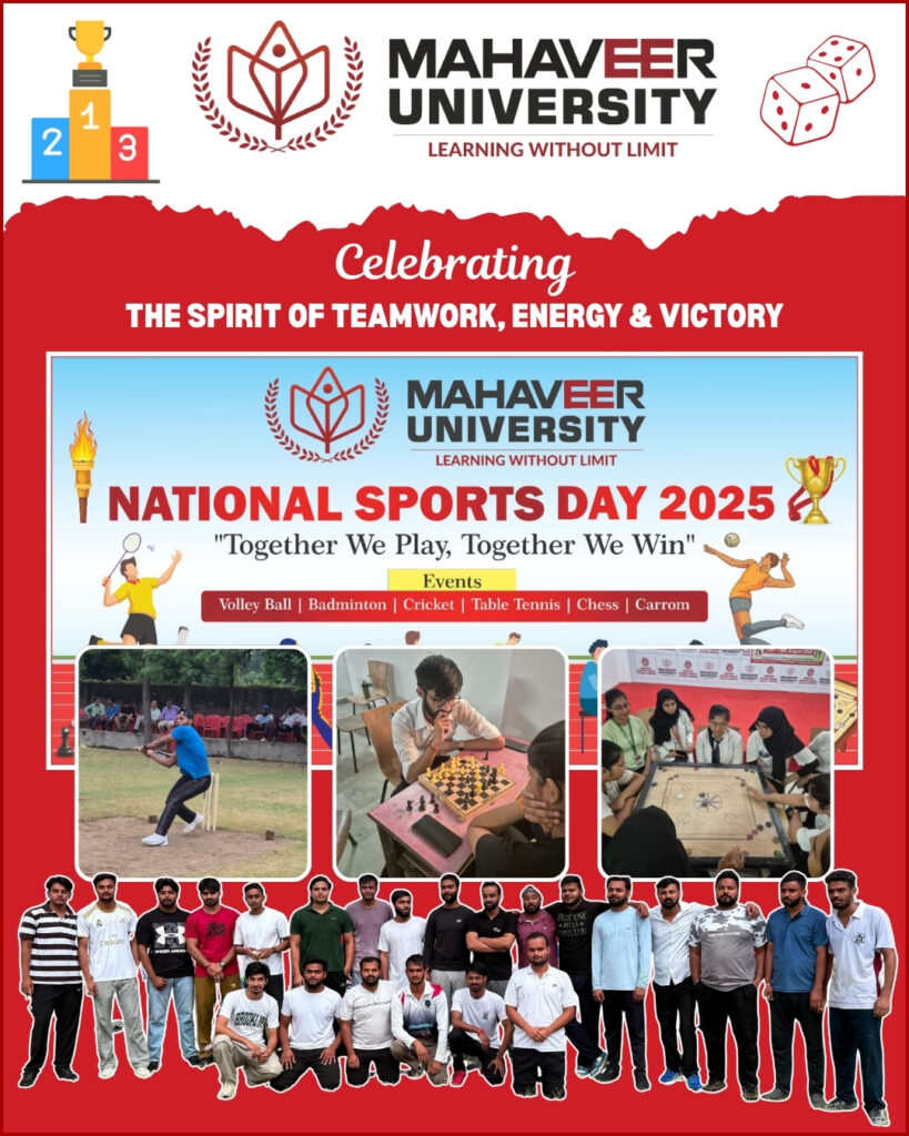 Mahaveer University proudly celebrated National Sports Day 2025 with a vibrant display of enthusiasm, energy, and teamwork. Embracing the theme “Together We Play, Together We Win,” the event underscored the significance of fitness, unity, and sportsmanship among students.