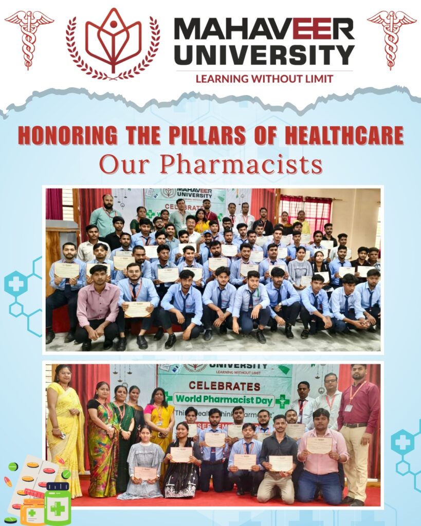 World Pharmacy Day was celebrated on 25th September with enthusiasm and zeal at Mahaveer University Meerut. The day marked the occasion with a series of engaging events — Poster Competition, Exhibition & Model Presentation, Pharma Quiz, and Pharma Debate — showcasing the talent, knowledge, and creativity of our students.