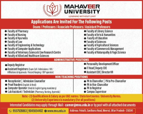 Mahaveer University Meerut has been established under Uttar Pradesh Private University Revision Act 2023 notified by the Government of Uttar Pradesh in July, 2023.
